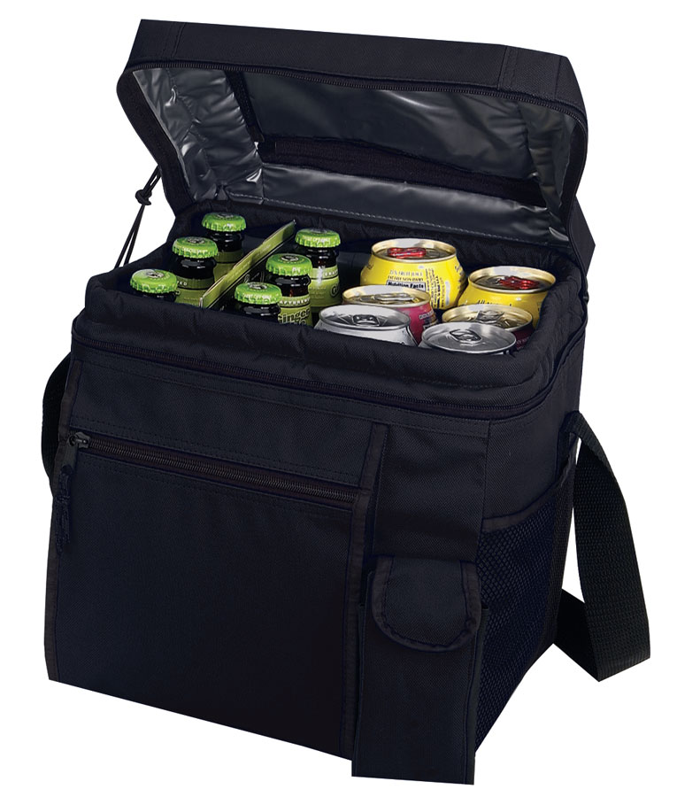 Top of bag has flap with hook and loop and zippered closure for easy main compartment access